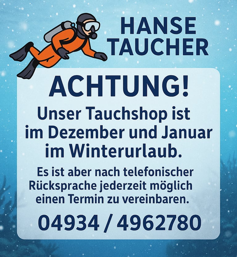 Hanse Taucher wurde 2021 gegründet. Seitdem bieten wir neben der Ausbildung auch ein aktives Clubleben. Wer Spaß am Tauchen hat oder es erlernen möchte, ist bei uns genau richtig. Im Jahr 2023 haben wir unseren Shop eröffnet, um unseren Tauchern einen besseren Service bieten zu können.